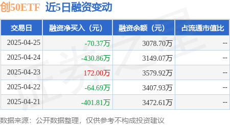 本站音问,4月25日,创50ETF(159681)融资买入211.26万元,融资偿还281.64万元,融资净卖出70.37万元,融资余额3078.7万元。